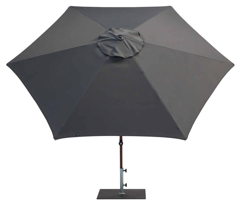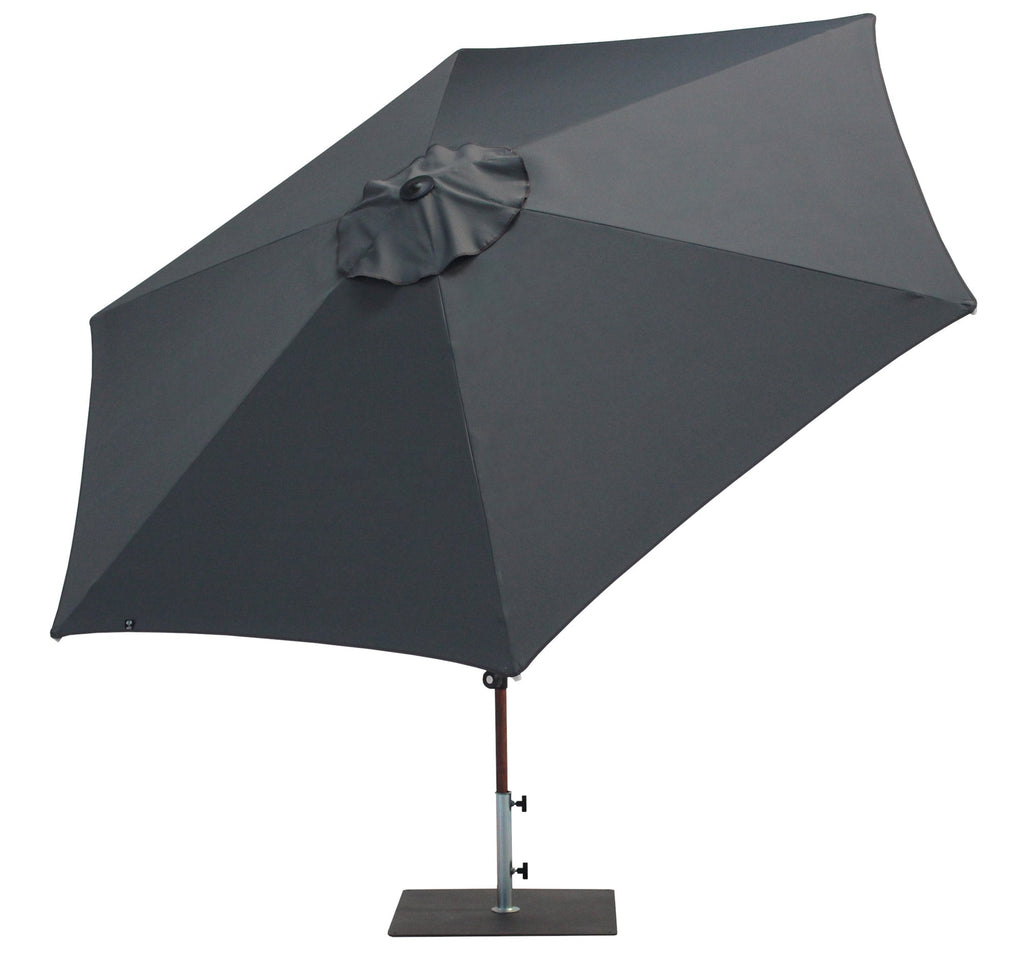 Ombrellone di design, moderno, pratico, di medie dimensioni con palo alluminio effetto legno e bacchette grafite. Si adatta a molteplici usi sia professionali che privati. L’apertura è manuale ed offre sia la regolazione in altezza, che l’inclinazione. Il tessuto PolyMa in dotazione offre un’eccellente protezione solare.