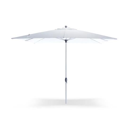Quadratischer Regenschirm, mit Kurbel-Öffnungs-/Schließsystem, Stange (2-teilig) aus eloxiertem Aluminium, 8 Aluminiumrippen, Polyestergewebe gr. 250/m2 in weißer Farbe.cm 300 X 300, Pfostend. mm 38, Lamellen d. 19mm