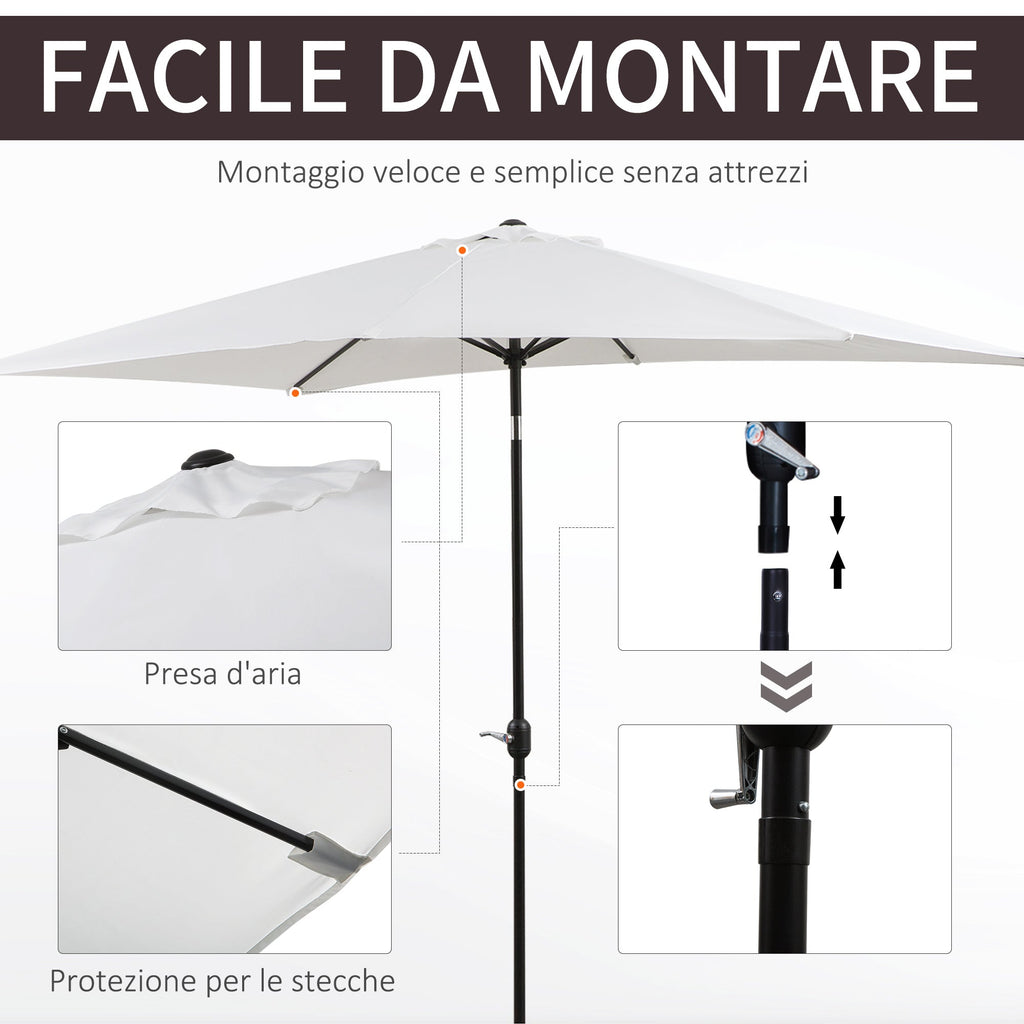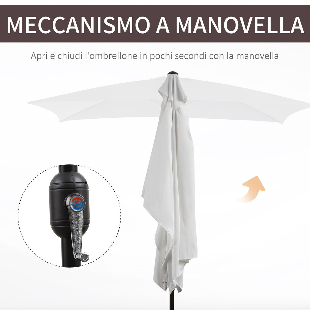 Dieser Regenschirm Es ist die beste Wahl an sonnigen Tagen! Das Polyestergewebe des Baldachins ist in der Lage, UV-Strahlen zu filtern, um Ihnen die ganze Saison über einen schattigen und kühlen Platz zu bieten. Leicht und praktisch, lässt es sich mit der speziellen Kurbel einfach öffnen und schließen und die cremeweiße Farbe passt sich perfekt an Ihre Gartenmöbel an und wertet Ihren Garten oder Ihre Veranda auf.