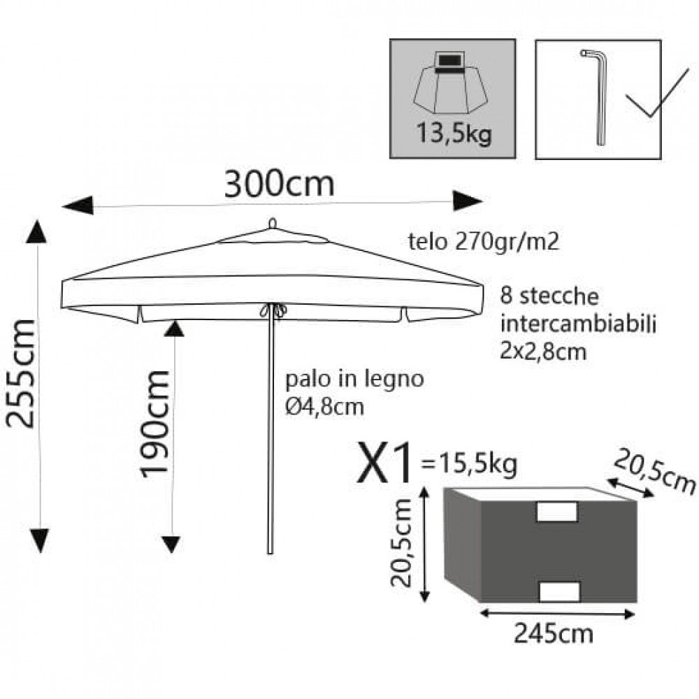 Venere Sonnenschirm Ø3 m aus braunem Holz