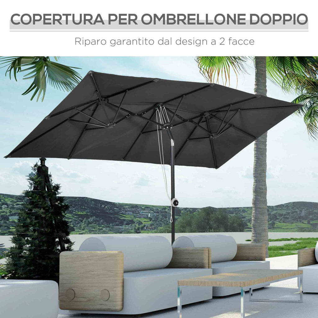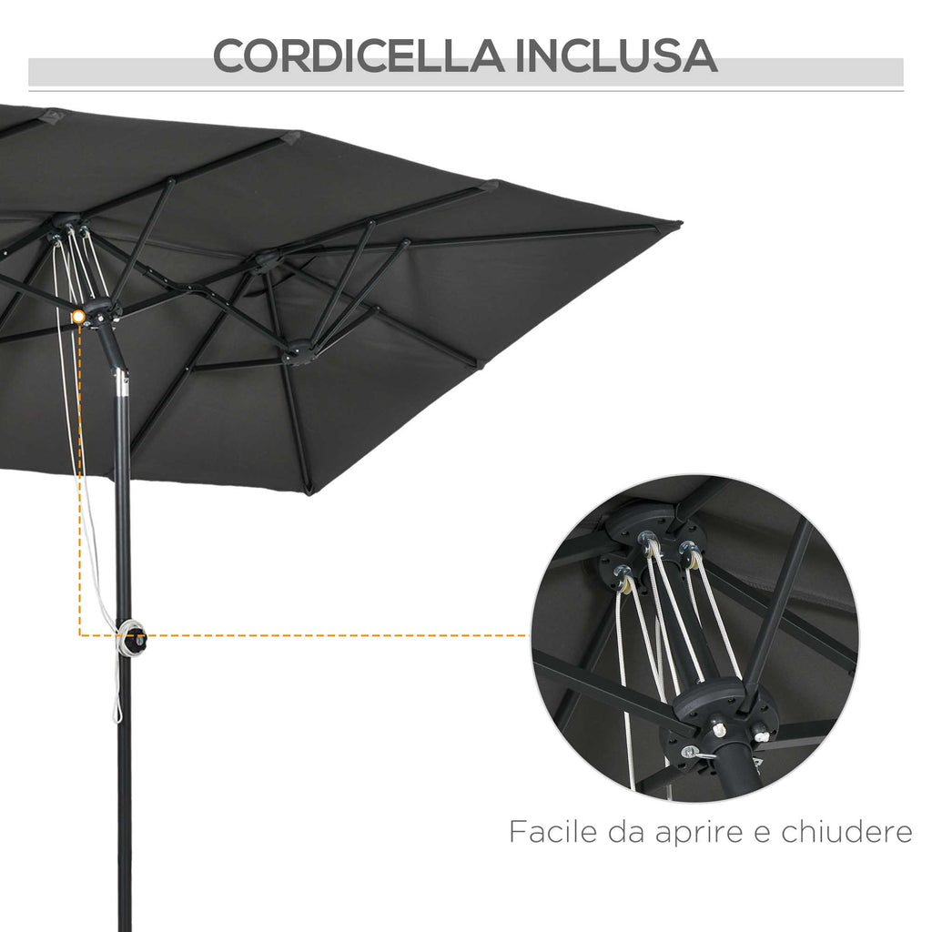 Ombrellone Doppio 150x295x170-214 cm Inclinabile e Regolabile in Poliestere e Metallo Grigio