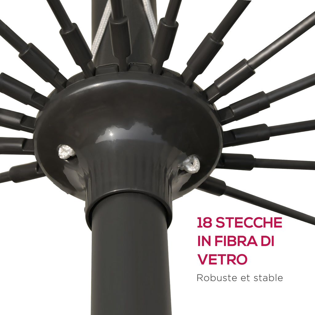 - STRUTTURA ROBUSTA: Il palo in metallo rivestito a polvere e le 18 stecche in fibra di vetro rendono questo ombrellone da esterni estremamente robusto e durevole nel tempo