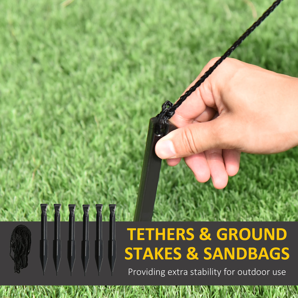 - 6 Heringe, 3 Seile und 2 Sandsäcke für Stabilität
