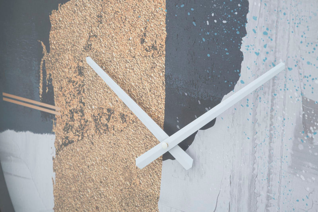 Runde Wanduhr mit abstraktem und zeitgenössischem Design, um eine kleine Ausstellung moderner Kunst in jeder Umgebung zu schaffen.