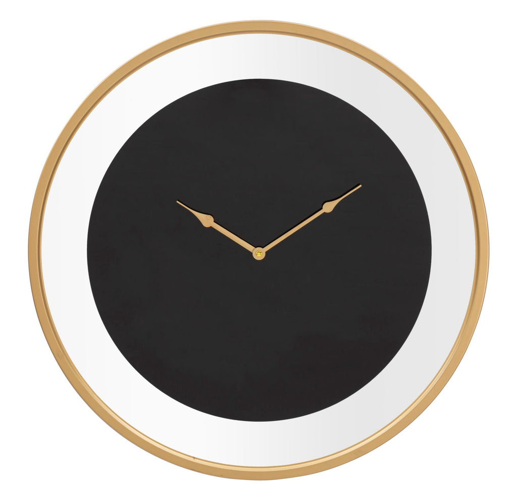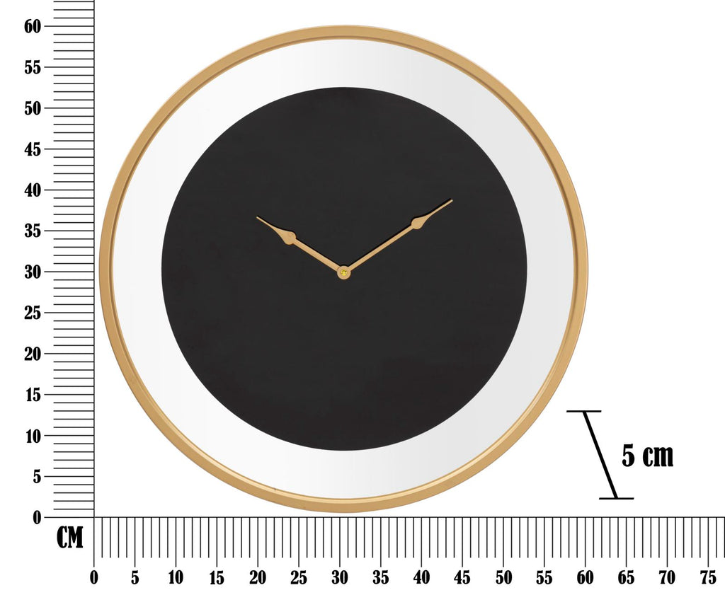 Modische Wanduhr Ø60x5 cm in Eisen und Gold und schwarzem Glas