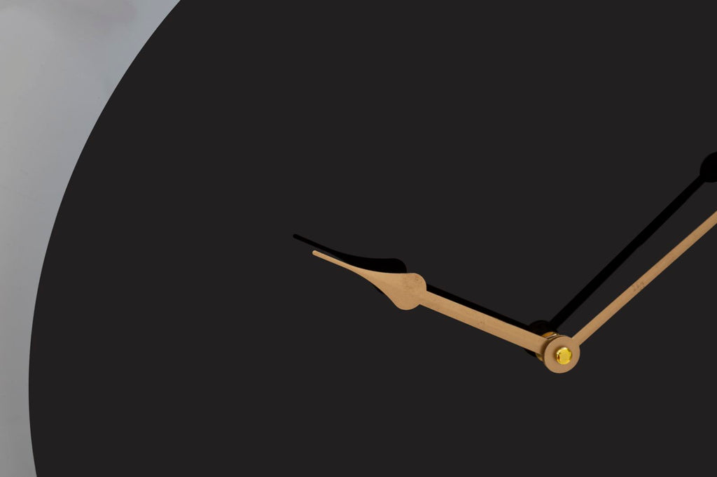 Elegante runde Wanduhr mit schlichtem, aber raffiniertem Design. Die Eleganz von Schwarz und Gold vereinen sich zu einer edlen Kombination.