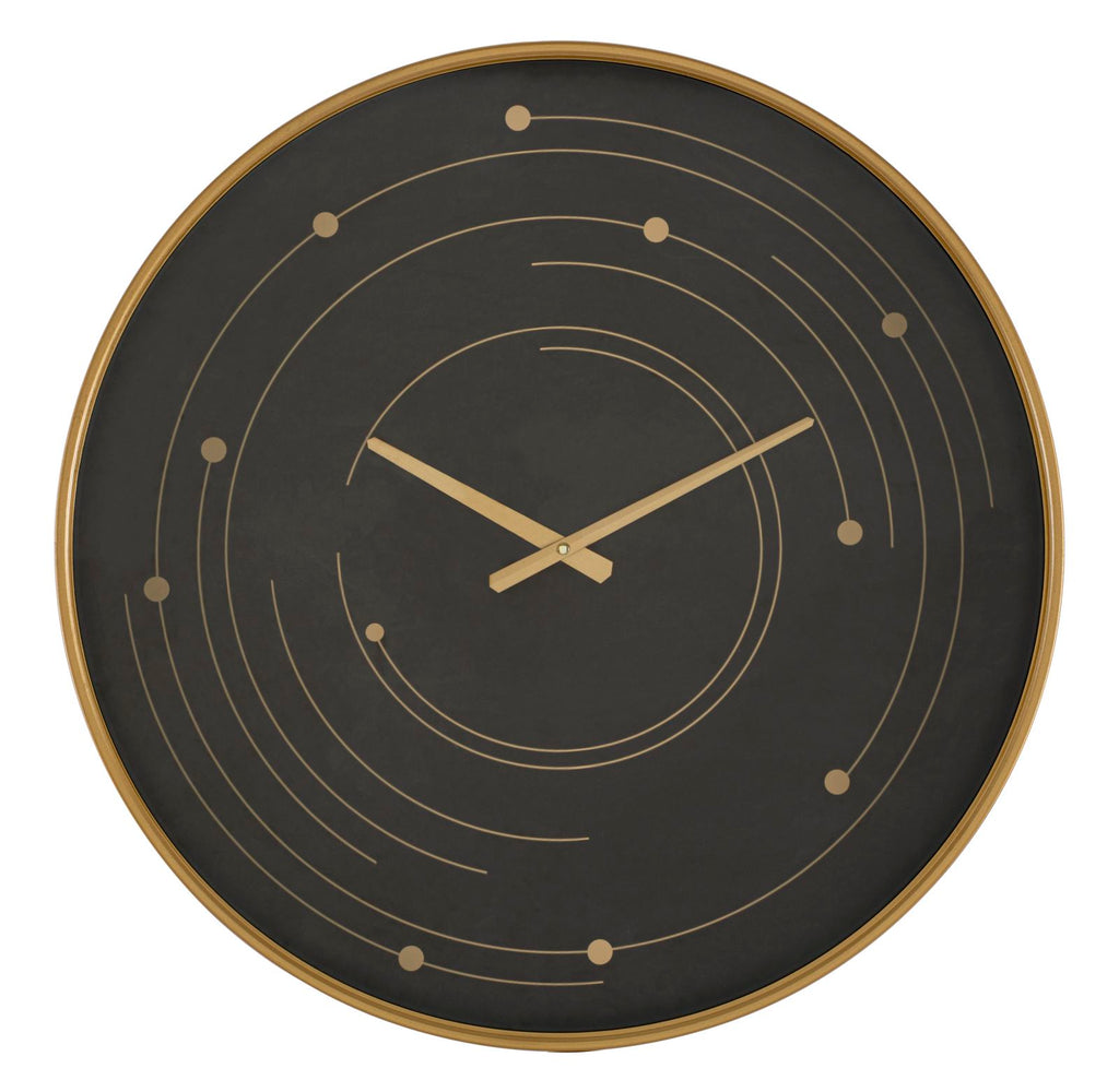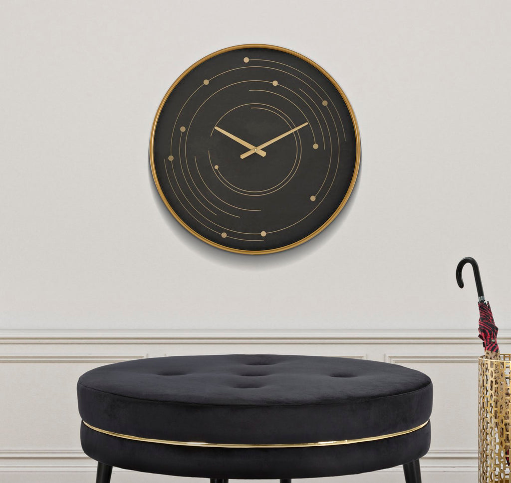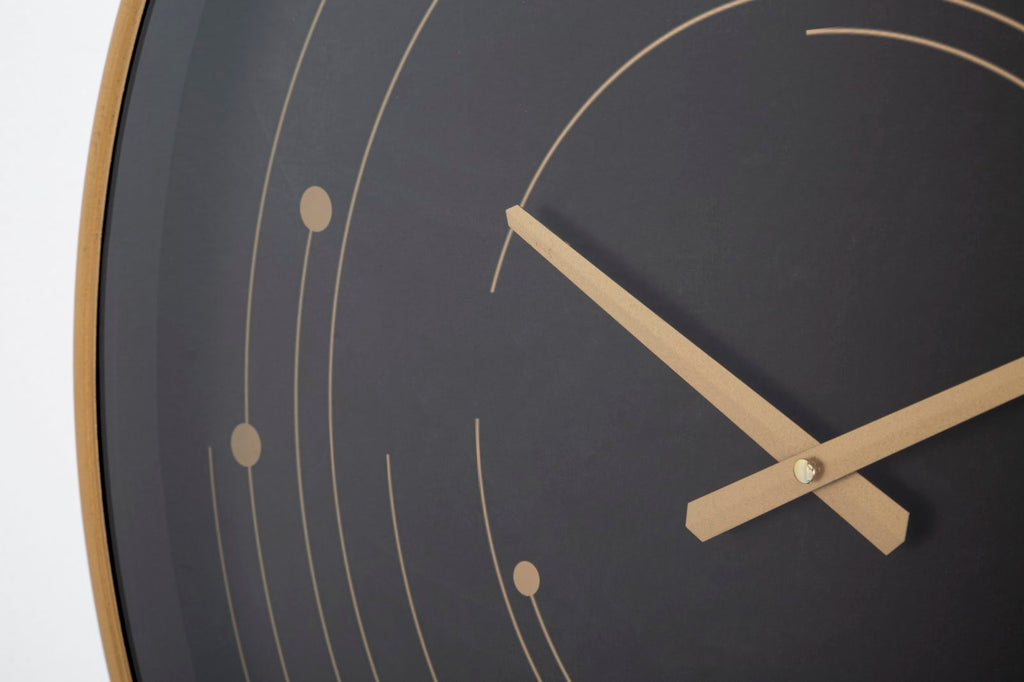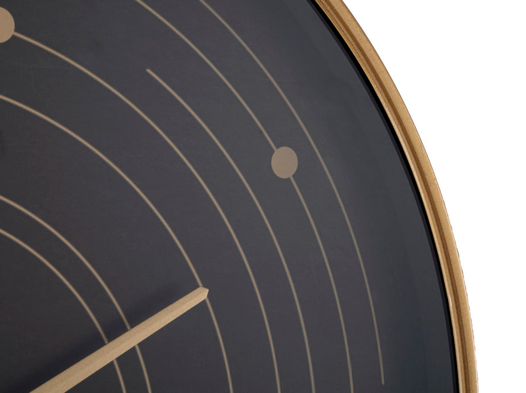 Wanduhr aus MDF, Metall und Glas mit geometrischen und klaren Linien. Edle Blitze charakterisieren Wanduhren, die jedem Möbel einen Hauch von Opulenz verleihen.