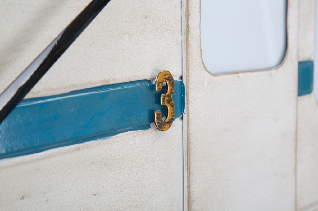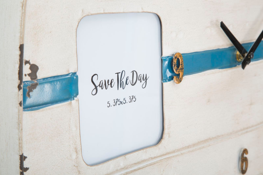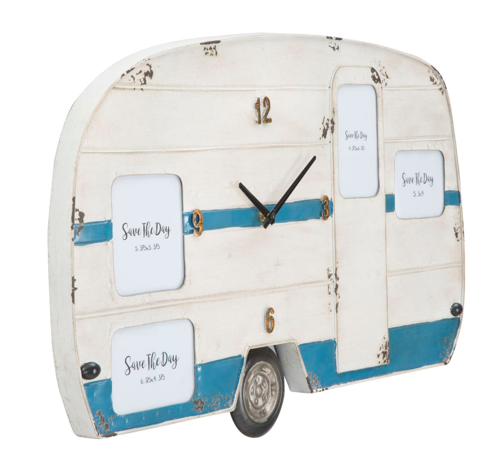 Caravan Wanduhr 79x3,50x46,50 cm in Weiß und Blau Eisen