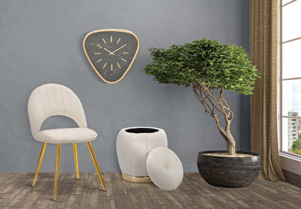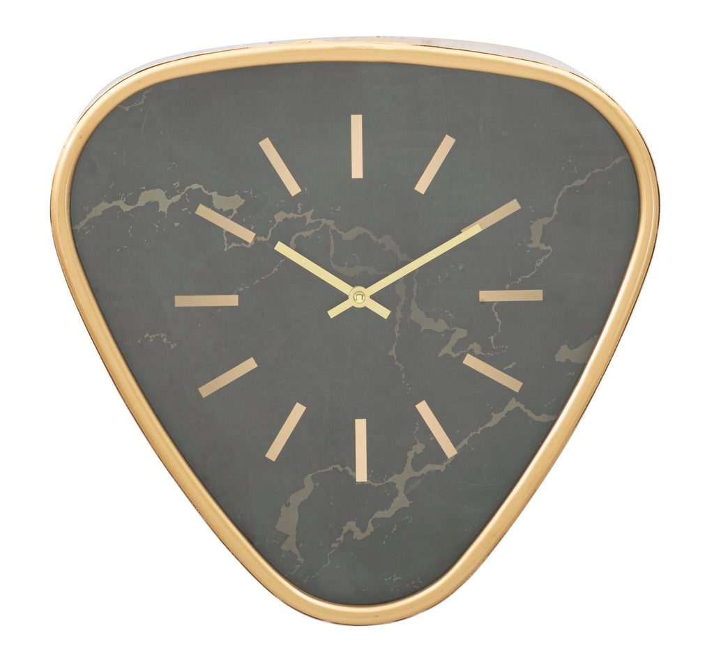 Dreieckige Wanduhr 40x6x38 cm aus MDF-Eisen und Gold- und Schwarzglas