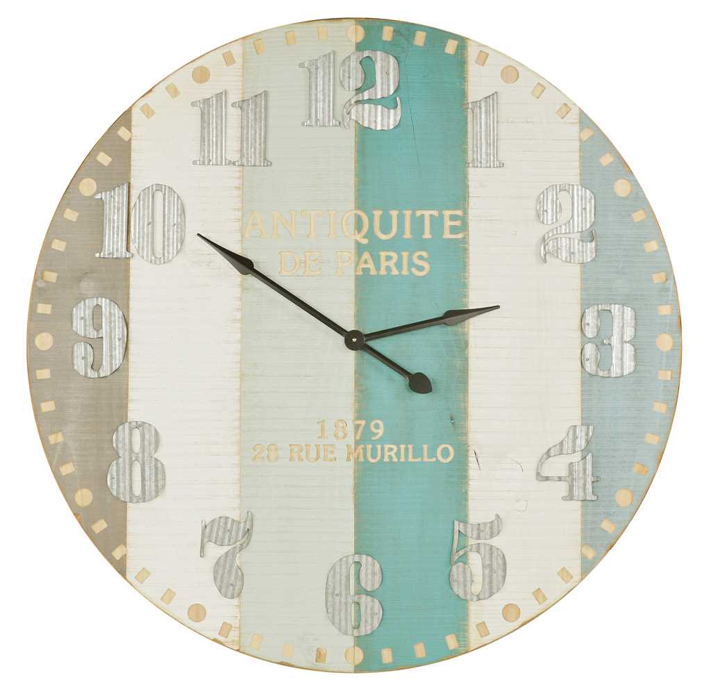 Weiß-blaue Holzuhr cm Ø113,5x6