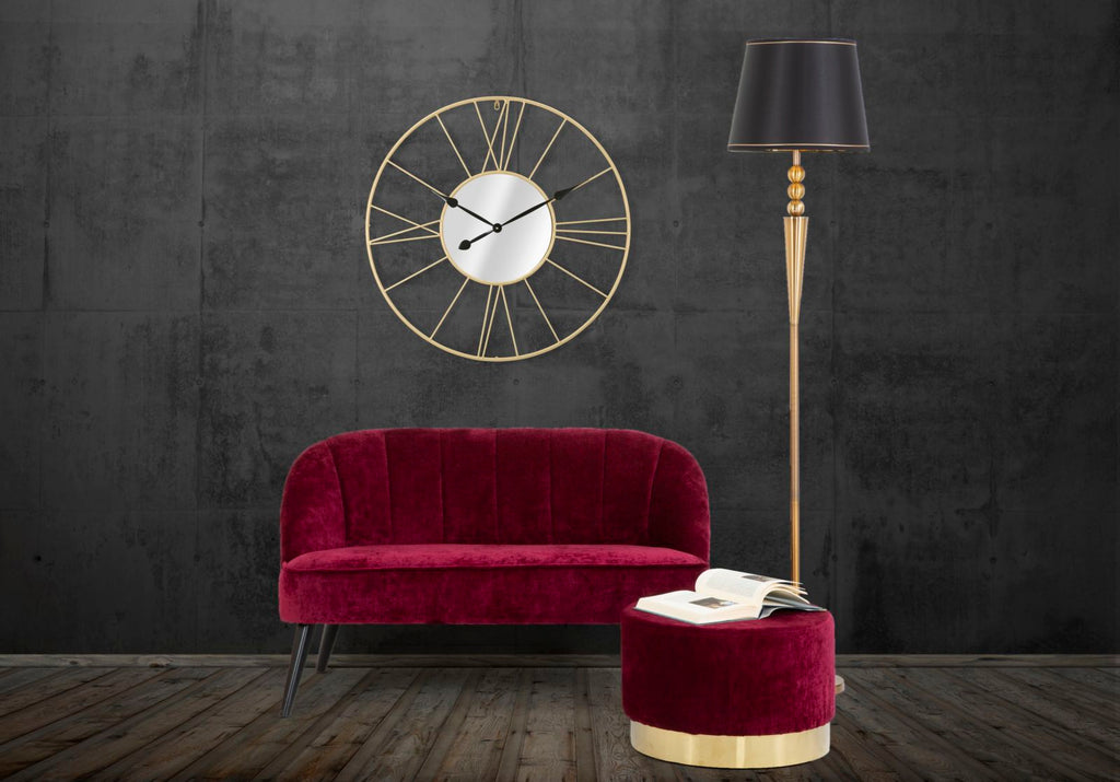 Uhr/Spiegel Glam Stick Ø80x6 cm in Gold und schwarzem Eisen