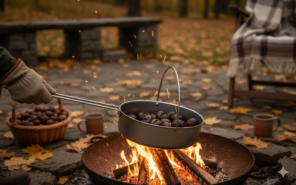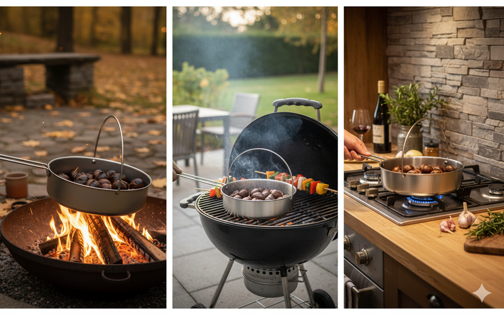 Padella per Castagne Ø32 cm con Manico e Gancio in Acciaio
