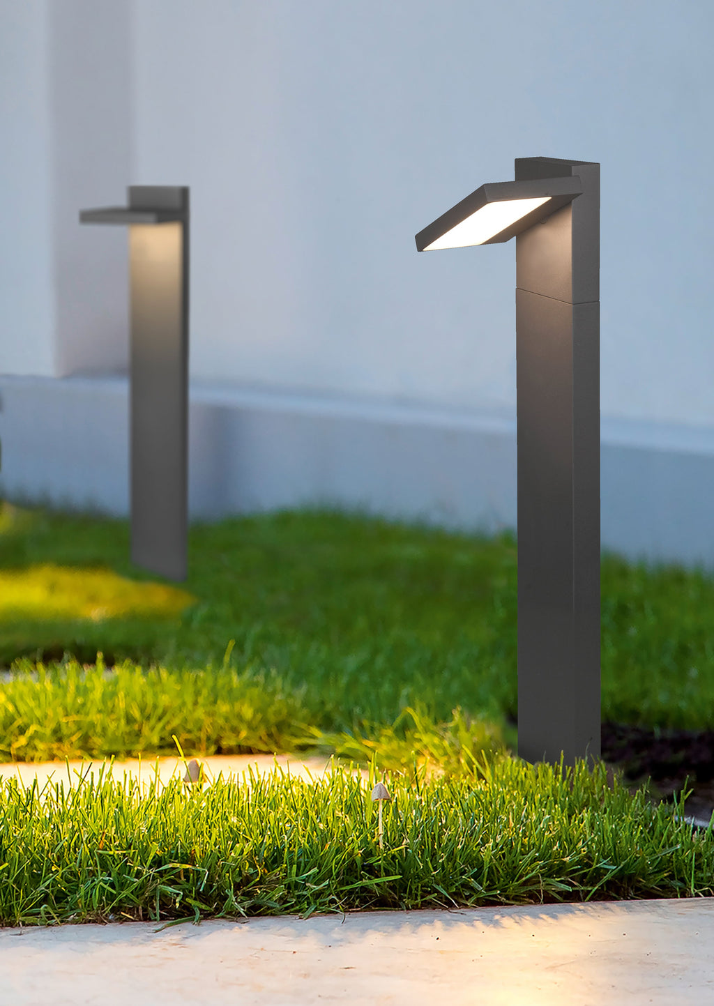 Anthrazitfarbener LED-Außenmast aus Aluminium