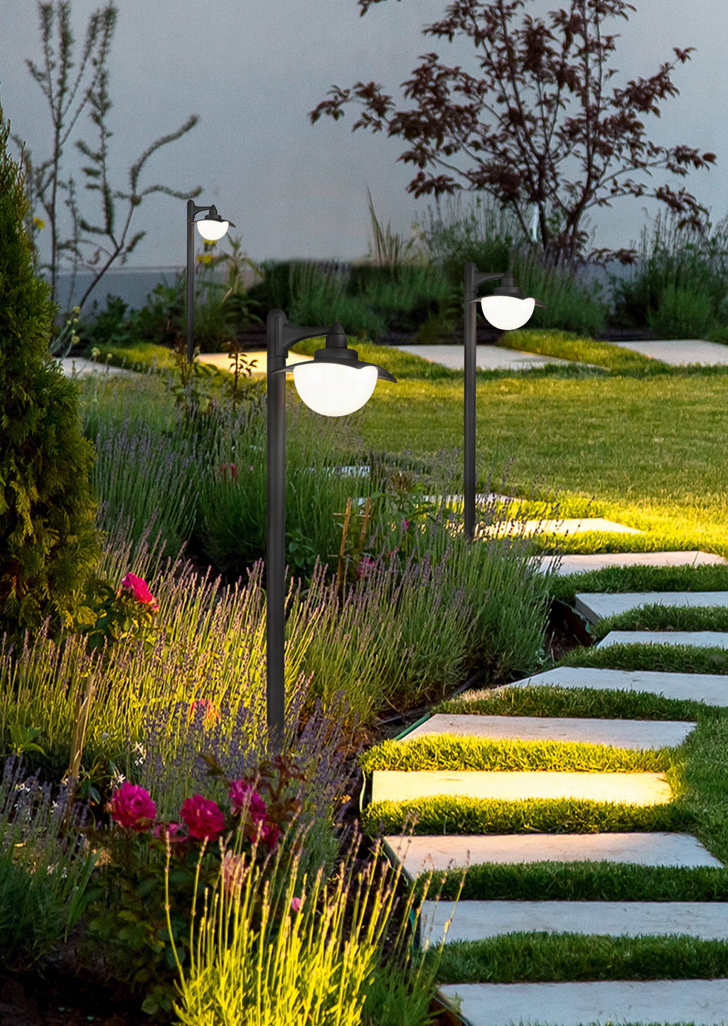 Donez Outdoor Pole Down Anthrazit Aluminiumguss mit weißem Glasdiffusor IP44 H.110Cm