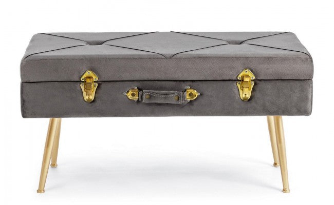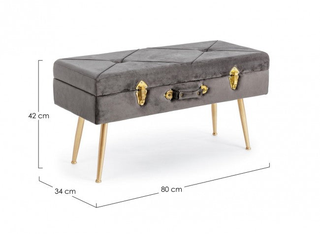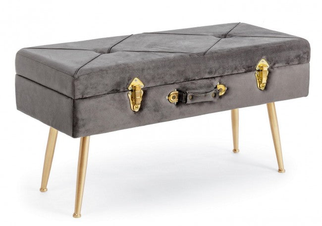 Polina Aufbewahrungsbank aus grauem Stoff mit Samteffekt