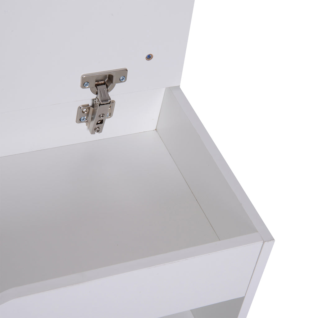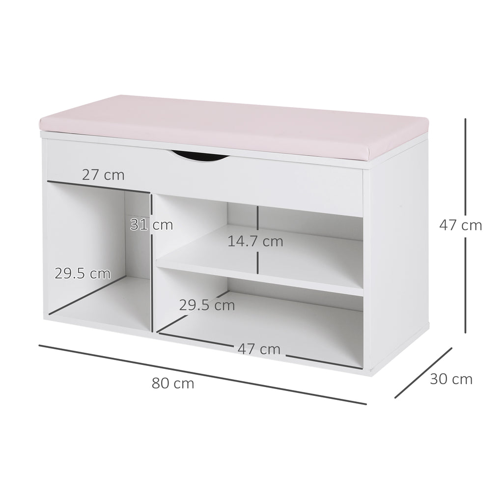 Eingangsbank Schuhregal mit gepolstertem Klappsitz aus weißem Holz 80 x 30 x 47 cm