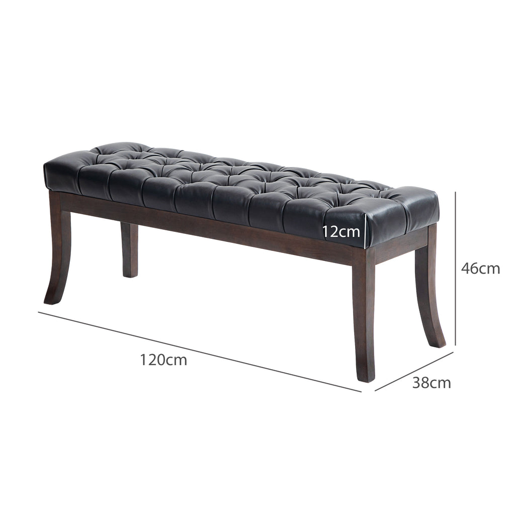 Panca Fondo Letto Imbottita con Design a Bottoni e Gambe Ricurve 120x38x46 cm in Pelle PU e Legno Nero