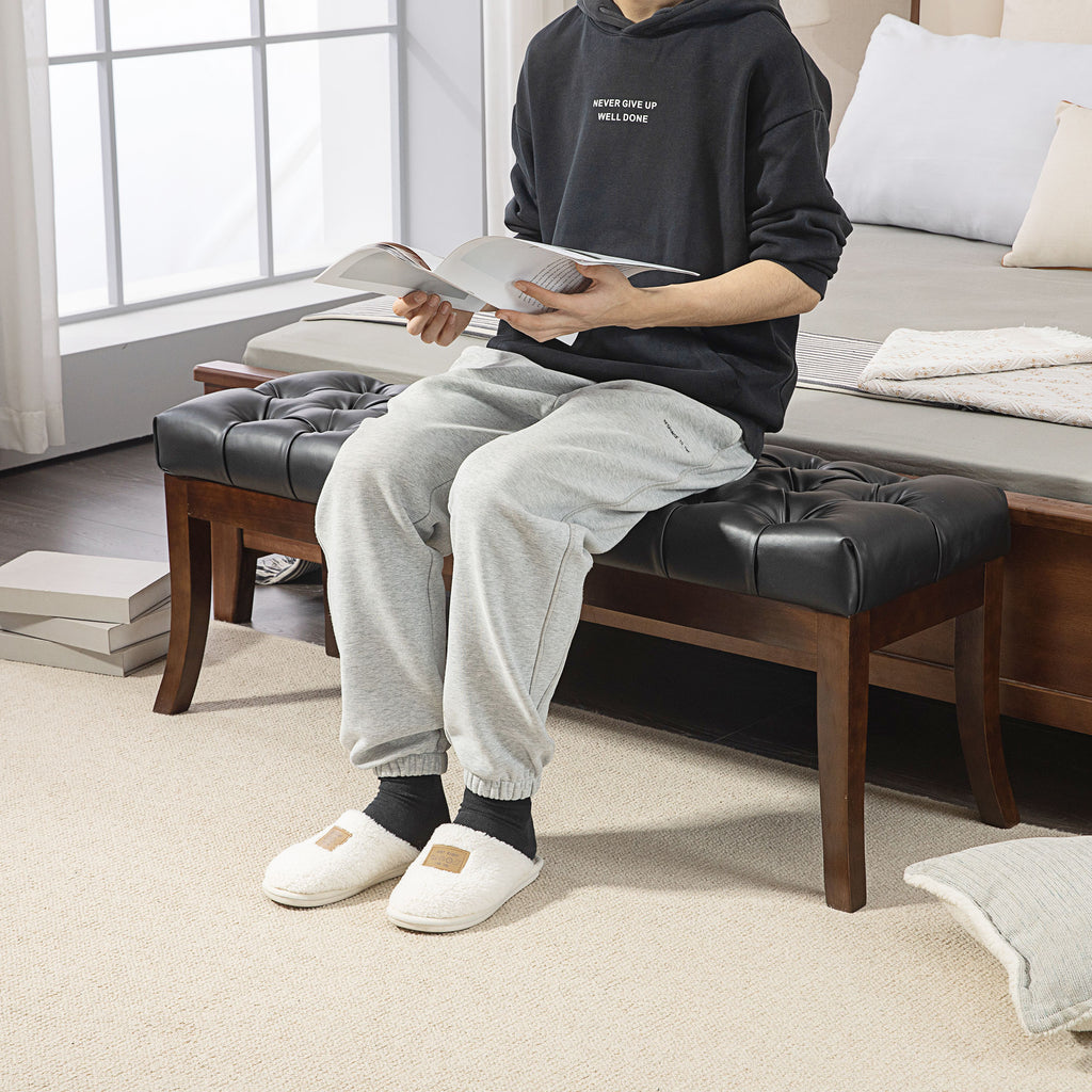 - SEDUTA COMODA: Dotata di un'ampia seduta imbottita e rivestita in soffice pelle PU, questa panca camera da letto offre un confortevole punto di sosta per sistemarti le calzature