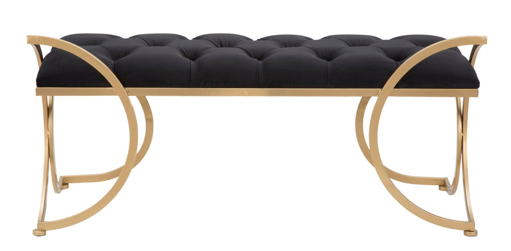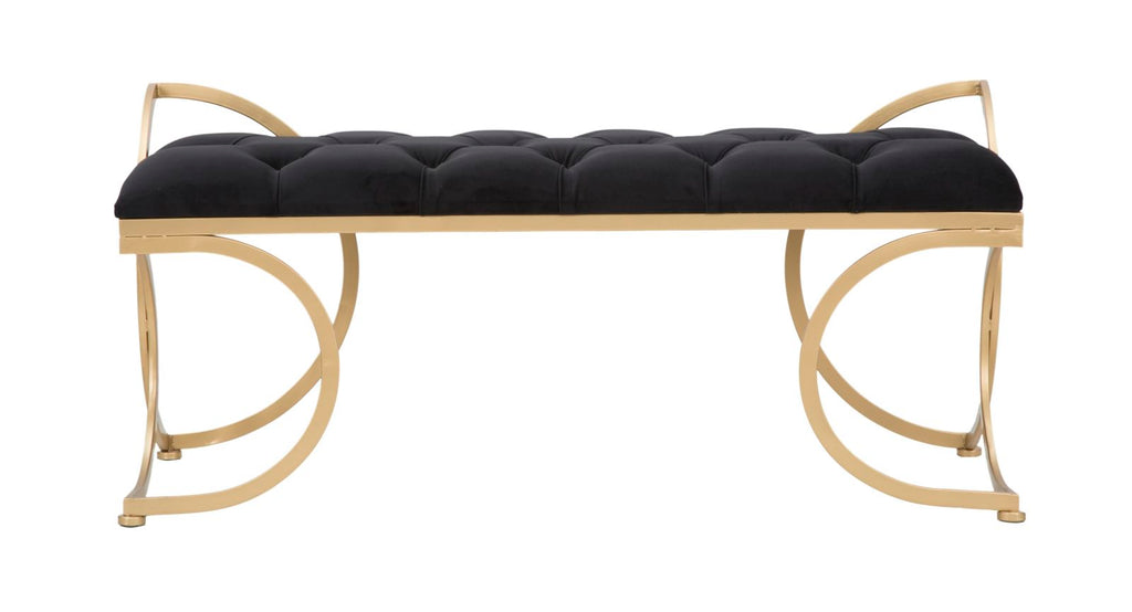 Glam Luxy Black Bank 103 x 43 x 47 cm aus Eisen und MDF und Schwamm und schwarzem und goldenem Polyester