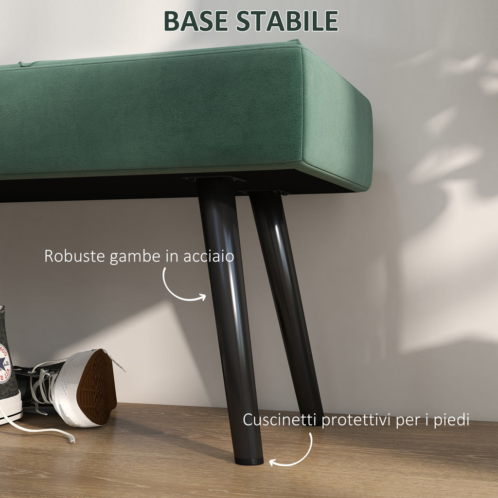 Panca Imbottita Fondoletto 100x36x45 cm in Tessuto Effetto Velluto e Acciaio Verde e Nero