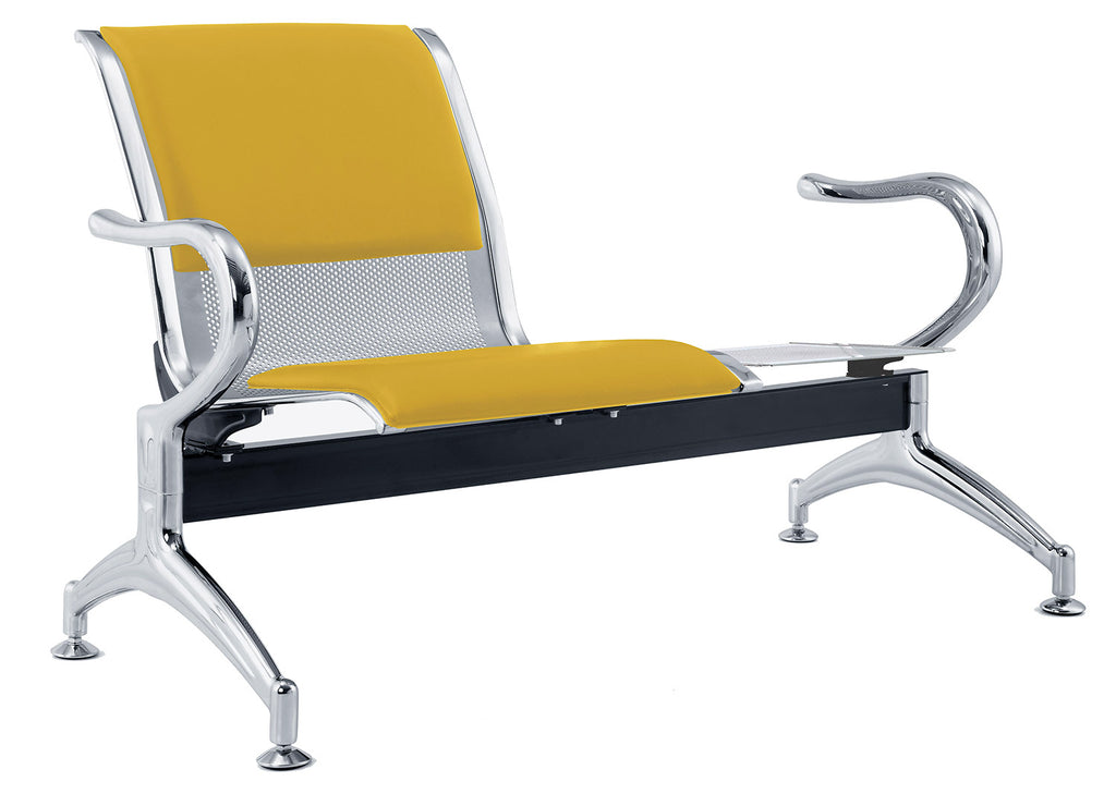 Panca per Sala Attesa 1 Posto da Ufficio con Cuscino e Tavolino in Acciaio e Similpelle Argento/Senape
