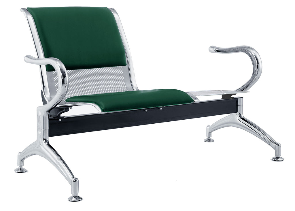 Panca per Sala Attesa 1 Posto da Ufficio con Cuscino e Tavolino in Acciaio e Similpelle Argento/Verde bosco