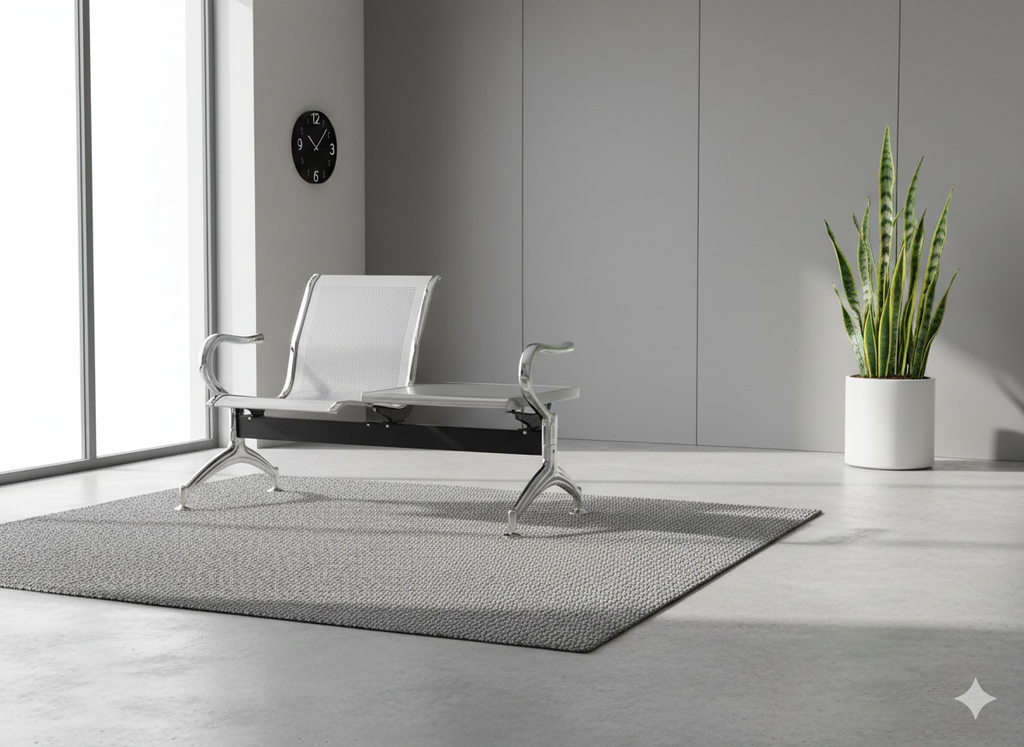 Panca per Sala Attesa 1 Posto da Ufficio con Tavolino in Acciaio Argento