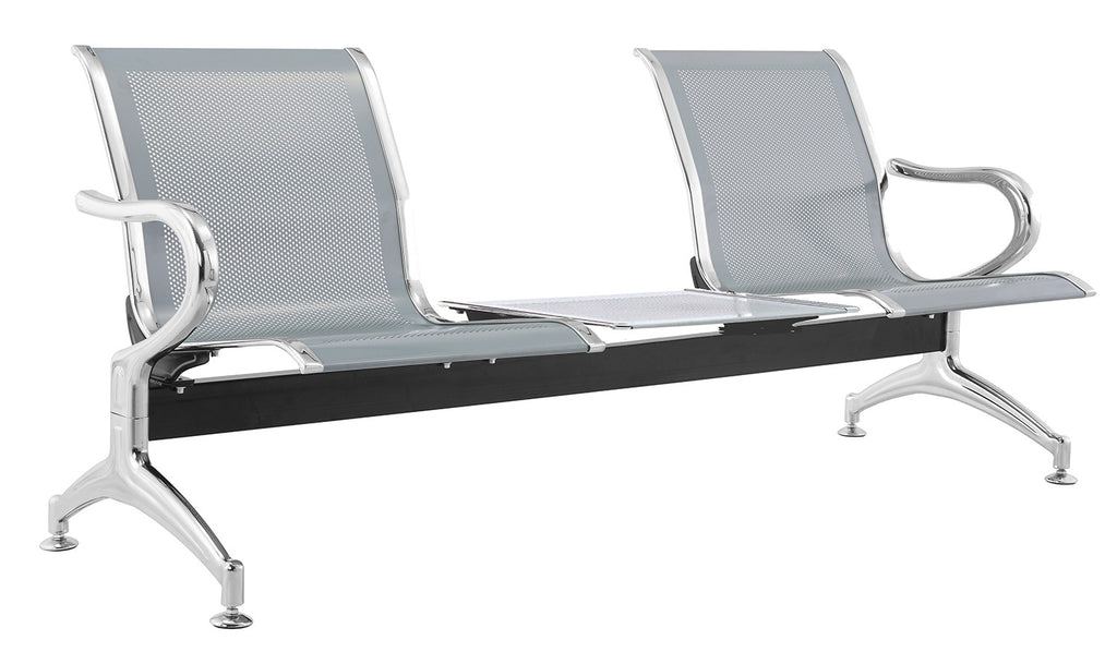 Giordanoshop - Cod: 292159 Panca per Sala Attesa 3 Posti da Ufficio con Tavolino in Acciaio Argento