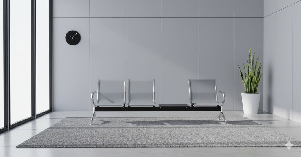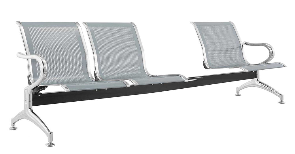 Panca per Sala Attesa 3 Posti da Ufficio con Tavolino in Acciaio Argento