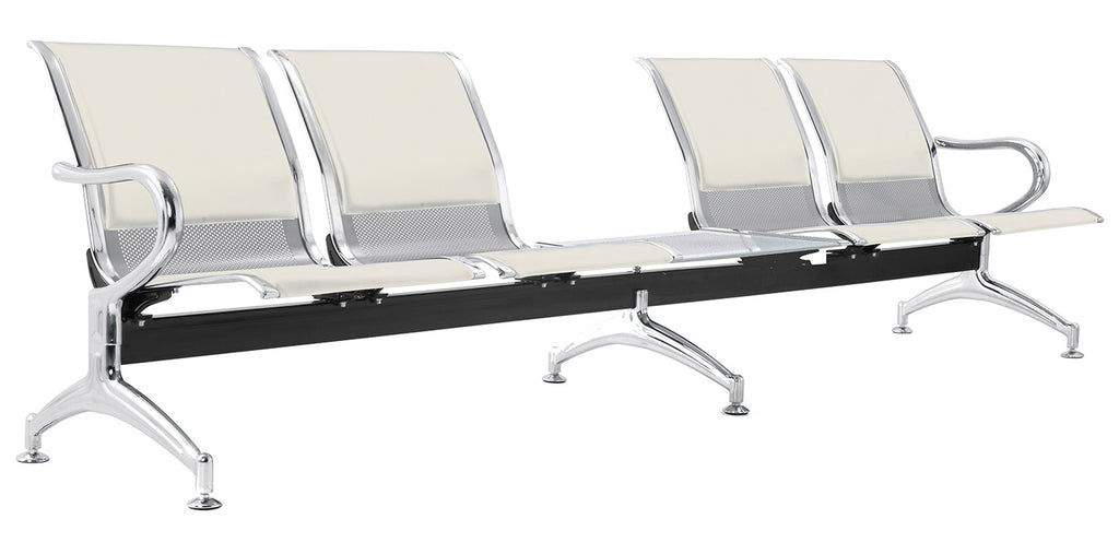 Panca per Sala Attesa 4 Posti da Ufficio con Cuscino e Tavolino in Acciaio e Similpelle Argento/Avorio