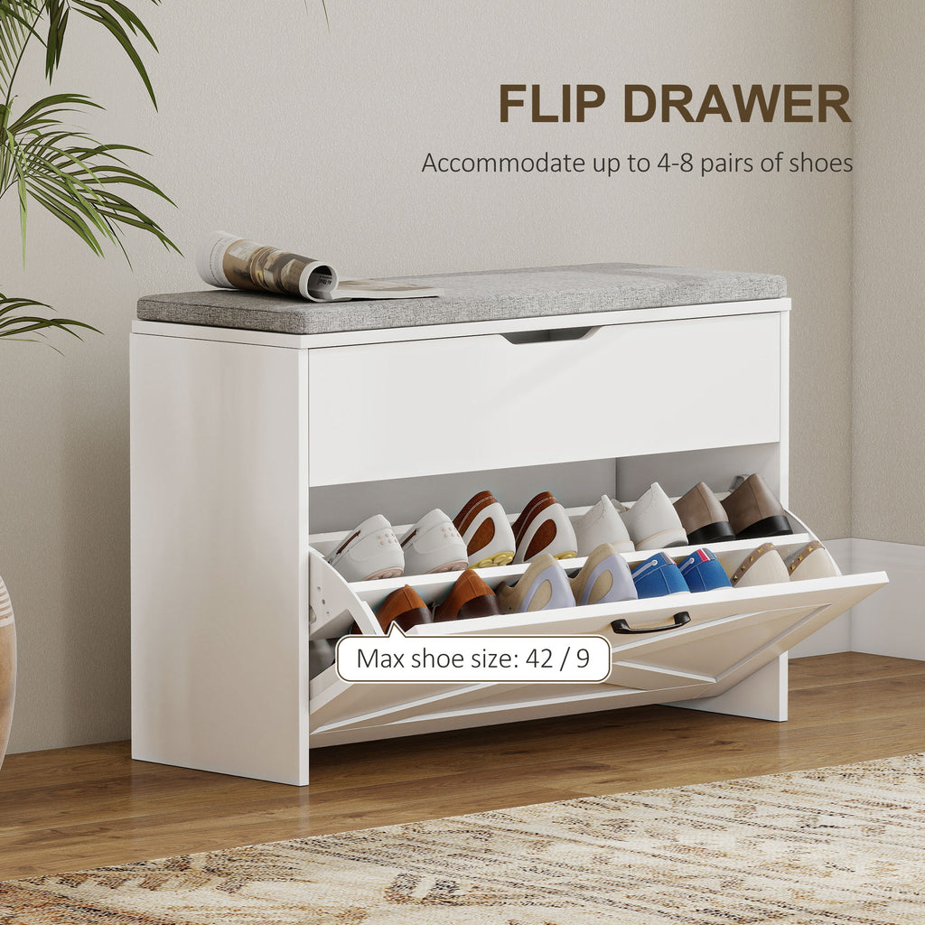 Panca Scarpiera 80x30x55 cm per 8 Paia di Scarpe con Cassetto Ribaltabile e Contenitore Bianco