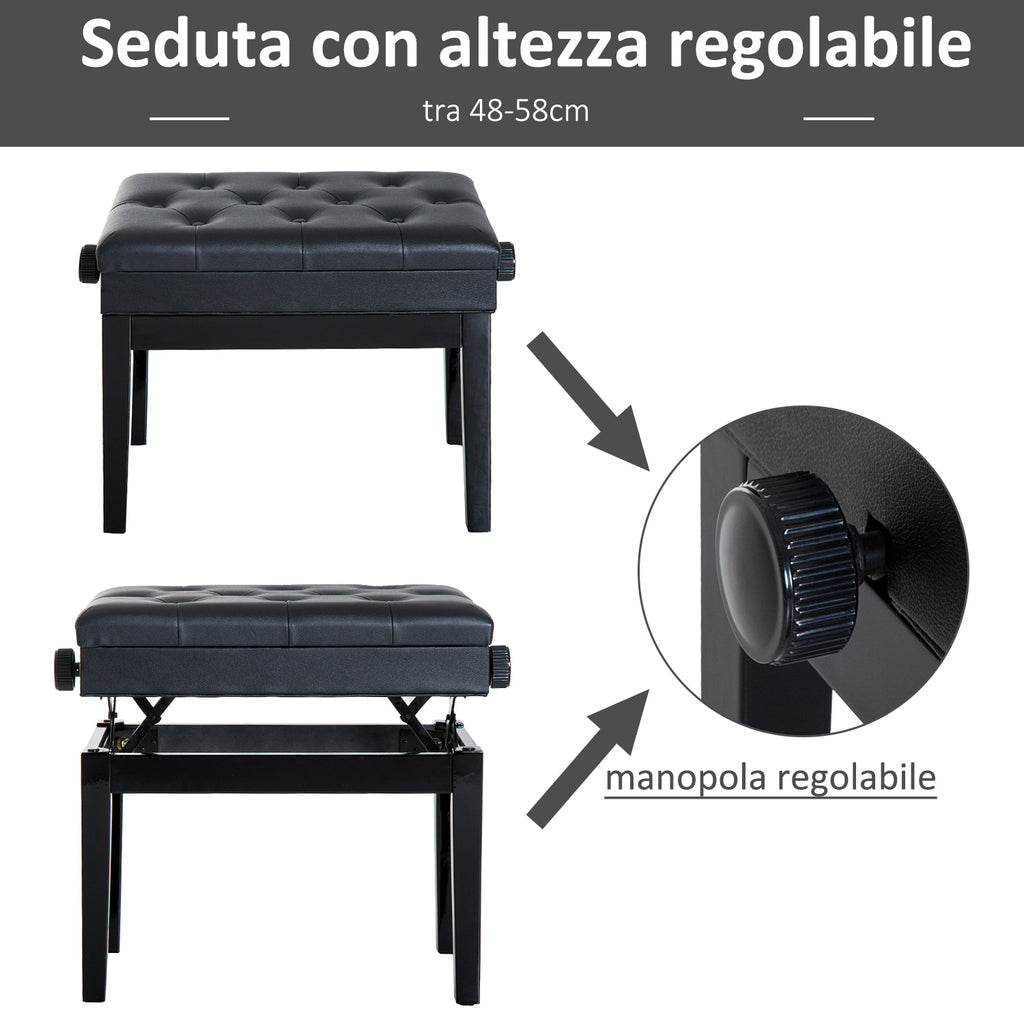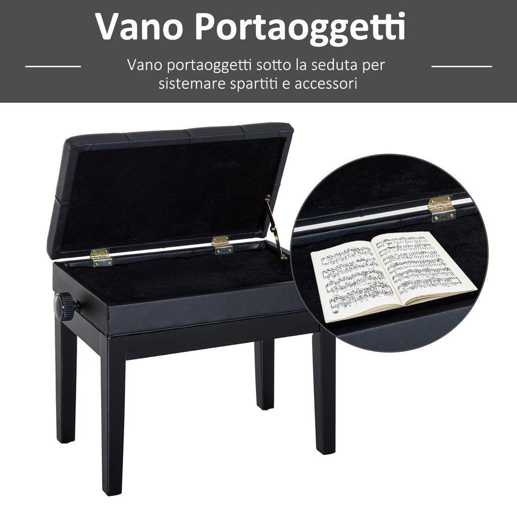 Klavierhocker Bank mit Ablagefach höhenverstellbar 54,5x33x48-58cm schwarz