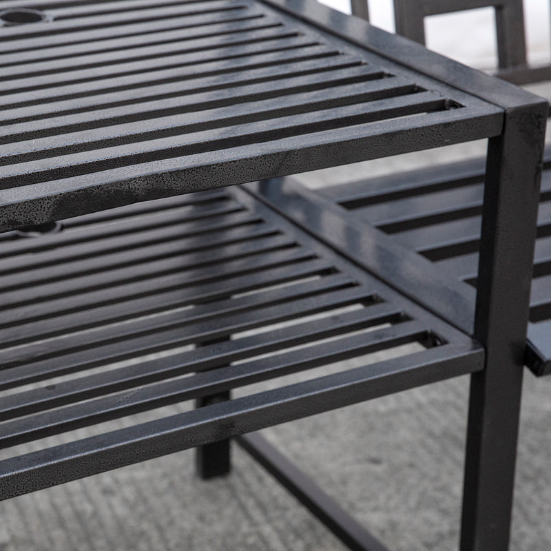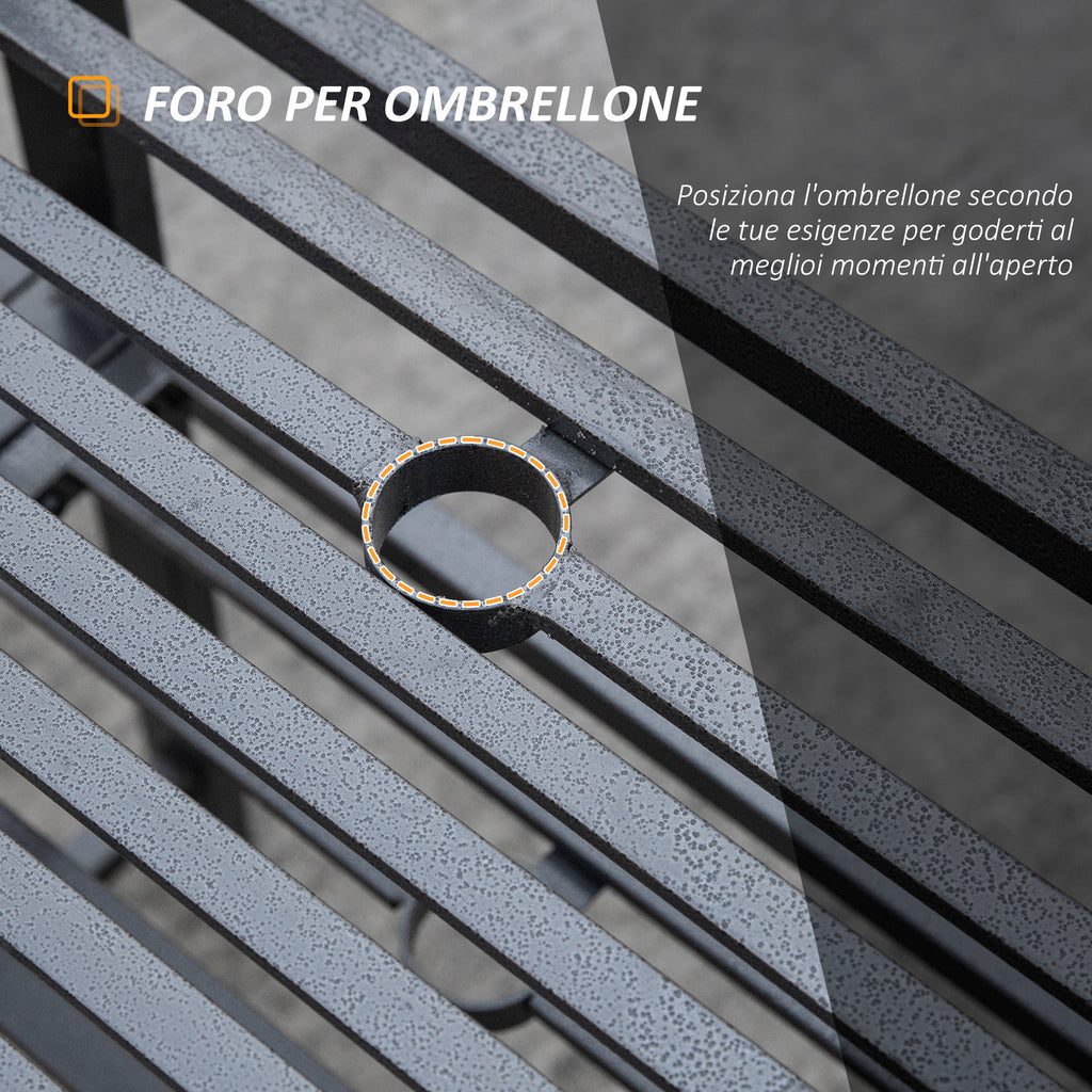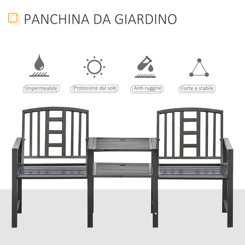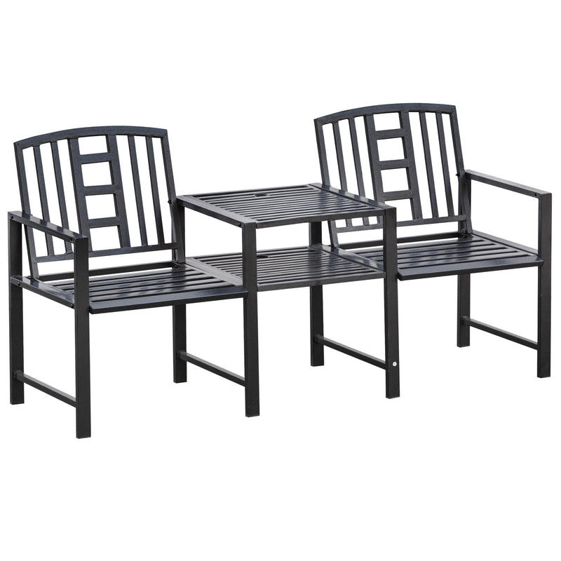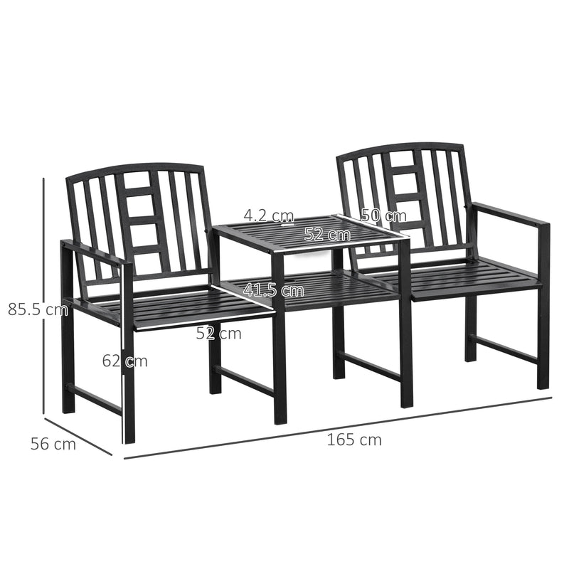 Vervollständigen Sie Ihre Gartendekoration mit der Metallbank. Es besteht aus massivem Stahl mit Rostschutzbehandlung, ist langlebig und leicht zu reinigen. Das 2-Sitzer-Design mit zentralem Tisch macht diese Gartenbank praktisch und bequem. Dank ihres schlichten Stils ist diese Outdoor-Bank perfekt für jede Umgebung im Freien.