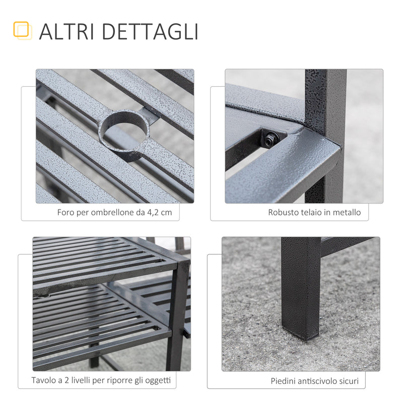 - Praktischer 2-stöckiger Beistelltisch mit Sonnenschirmloch