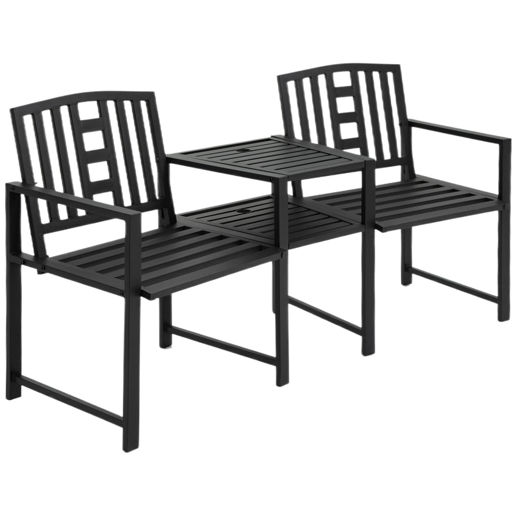 2-Sitzer-Gartenbank 165 x 53,5 x 85,5 cm mit Tisch aus schwarzem Metall