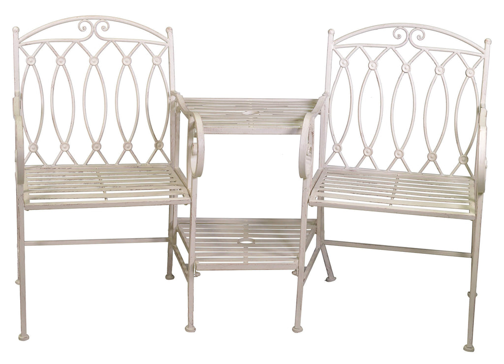 2-Sitzer-Gartenbank mit Eisentisch 155 x 68,5 x 91,5 cm Weiß Ragusa