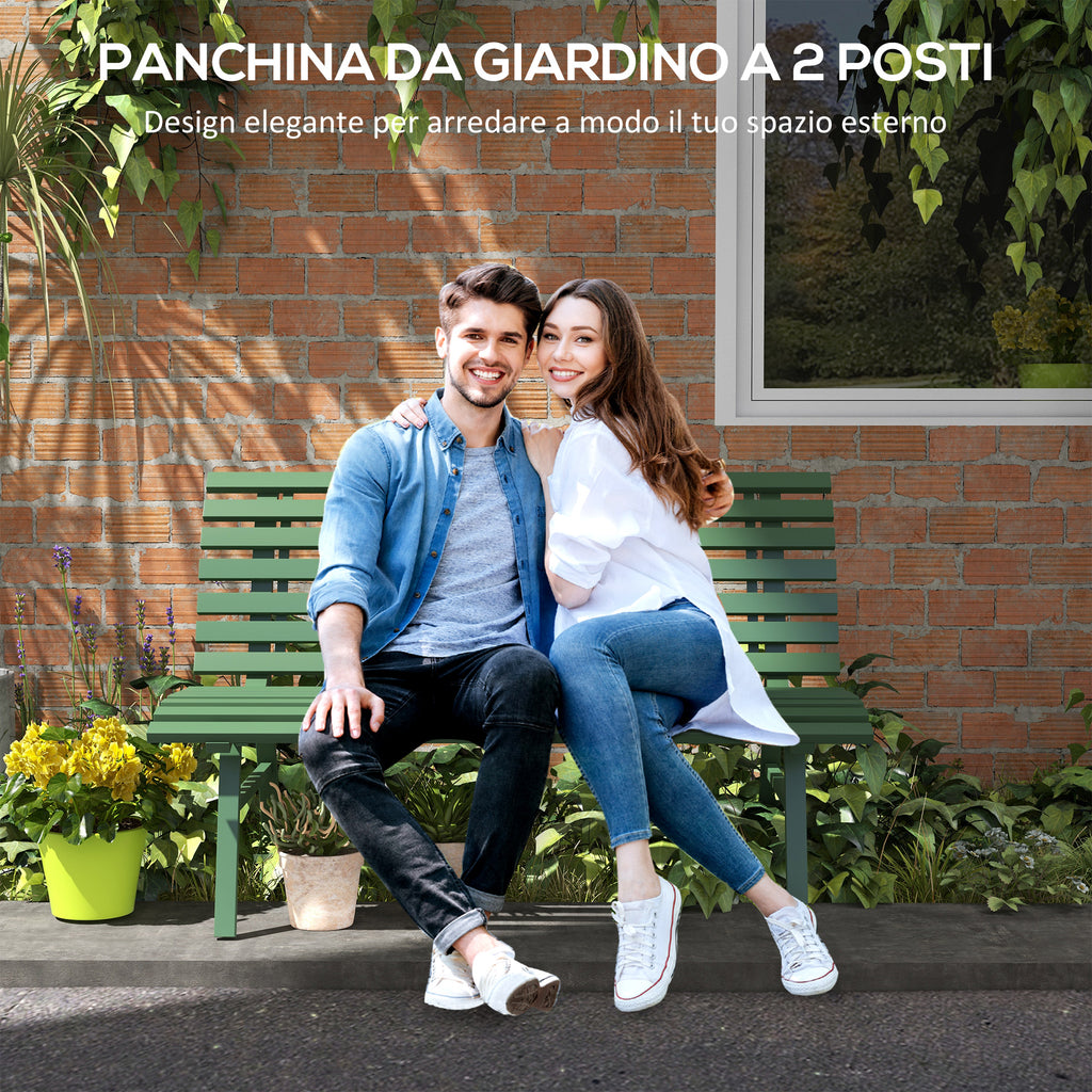 Panchina da Esterno in Alluminio a 2 Posti a Doghe 123x67x79cm Verde