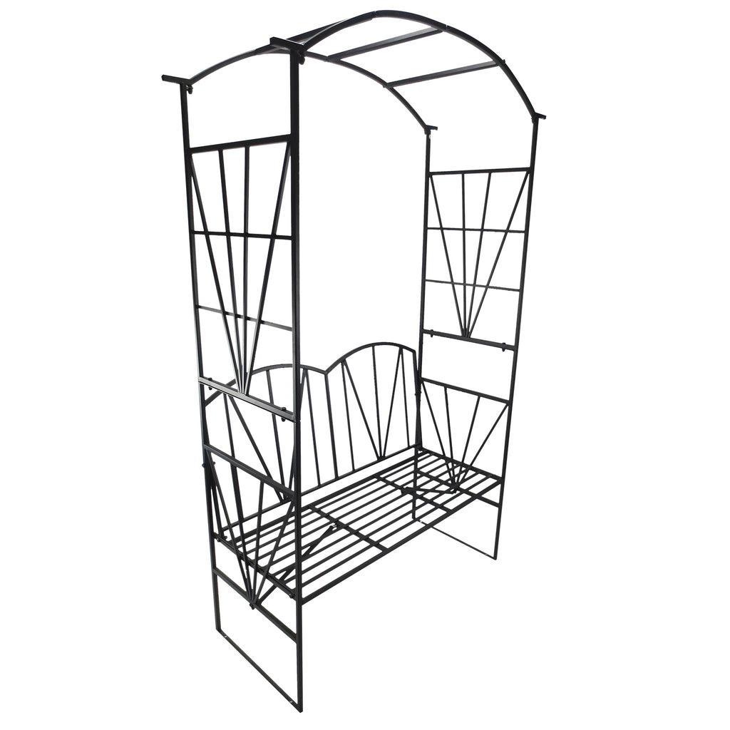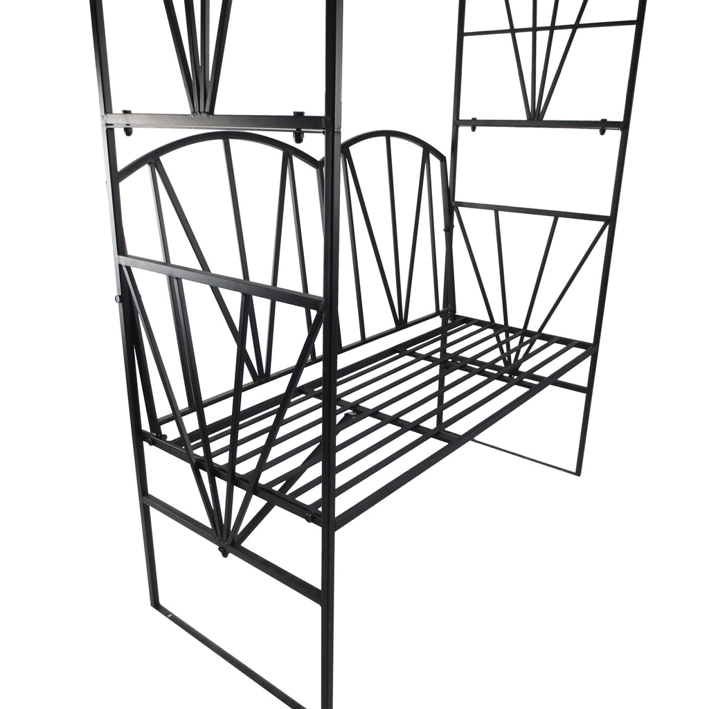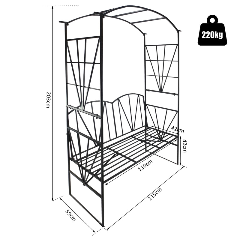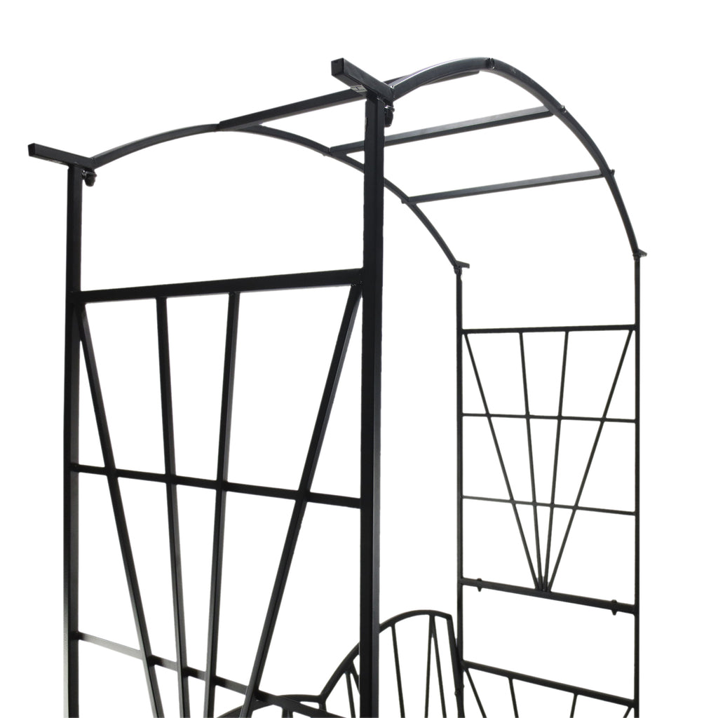 Gartenbank 2 Sitze mit Kletterbogen für Pflanzen Schwarz 115x59x203 cm