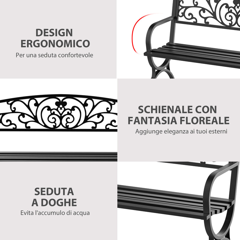 Gartenbank 2 Sitze aus schwarzem Schmiedeeisen 127x60x85 cm