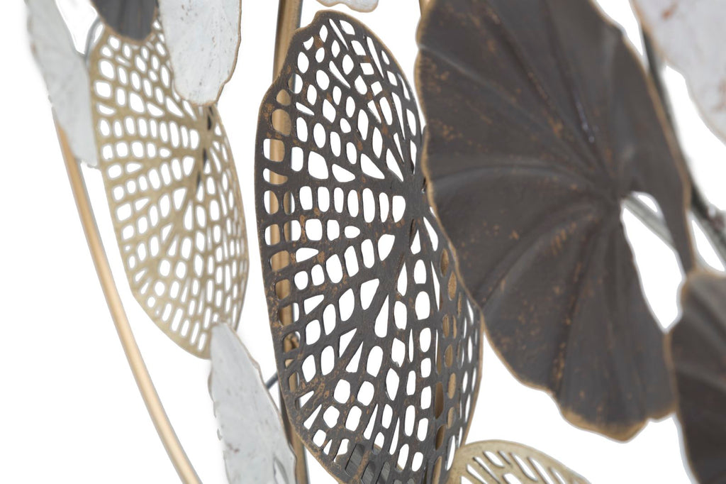 3D-Dekorplatte aus Metall mit einem Design, das an Blätter und die Natur erinnert. Eine exotische Note, um jede Umgebung zu personalisieren.