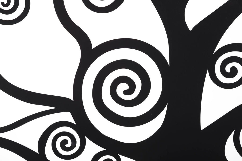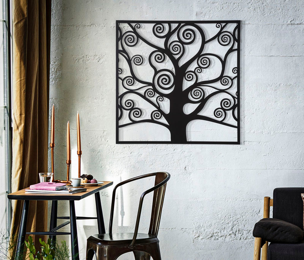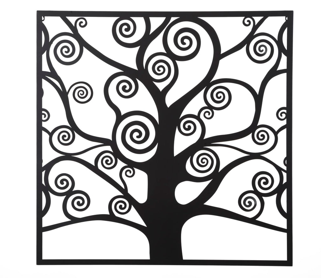 3D-Dekorplatte aus schwarzem Metall. Das besondere Baumdesign verleiht einen Hauch von Klasse mit Verweisen auf die Natur und die Ursprünge des Lebens.