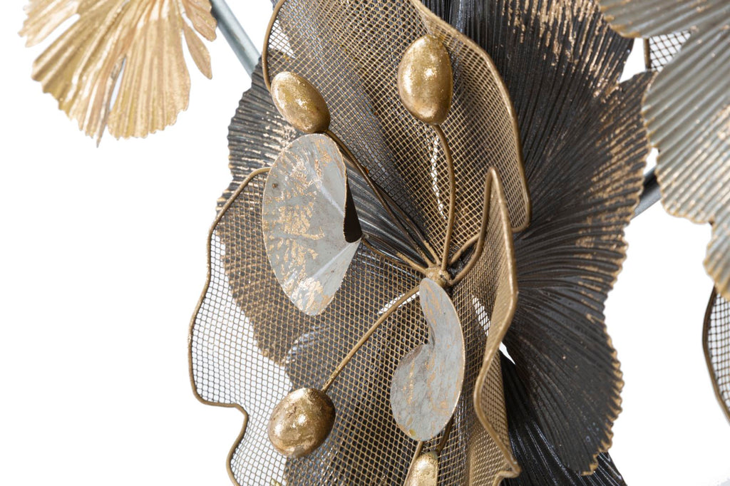 Metallplatte mit floralem Design. 3D-Paneele sind der neue Trend für die Dekoration von Wänden. Lackiertes Metall ist in geometrischen, pflanzlichen oder tierischen Formen erhältlich, die jeder Umgebung einen glamourösen und überraschenden Reiz verleihen.