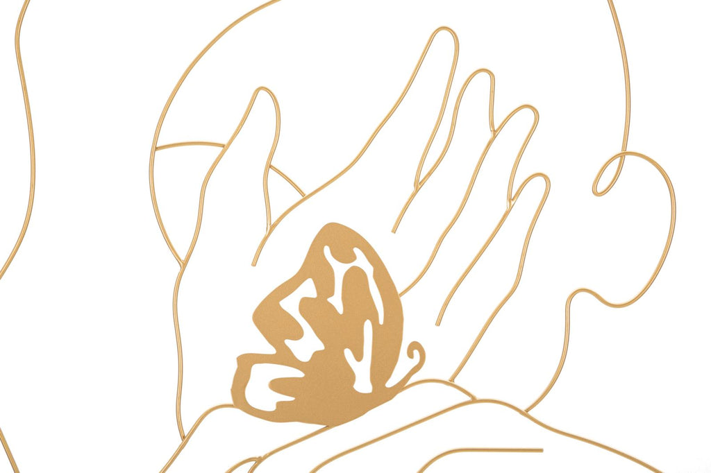 Questo pannello decorativo 3D per parete presenta un design minimalista e pulito che rappresenta un volto accompagnato da due mani e una farfalla. Le linee semplificate donano un tocco di eleganza e raffinatezza alla composizione. Il tutto è delicatamente incorniciato in una cornice rettangolare, aggiungendo un tocco di definizione e completando l'aspetto complessivo con un tocco di stile.