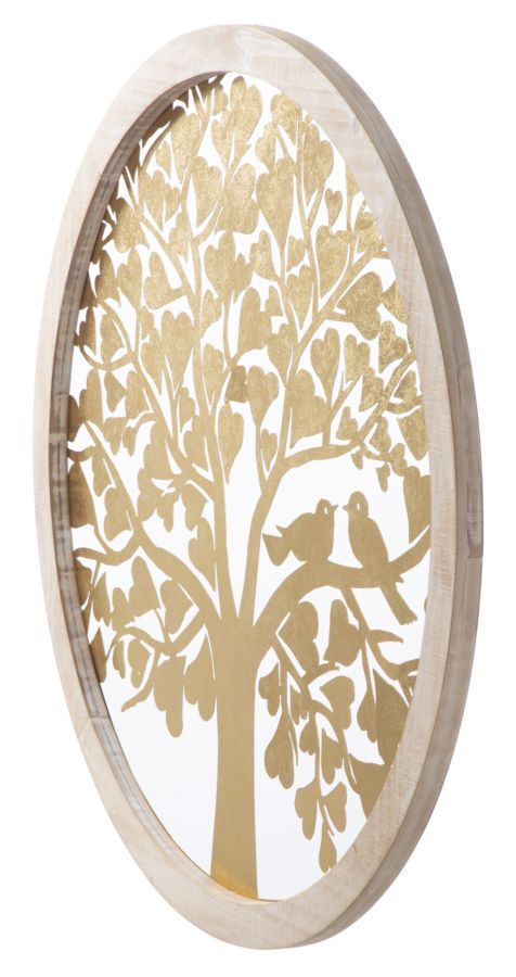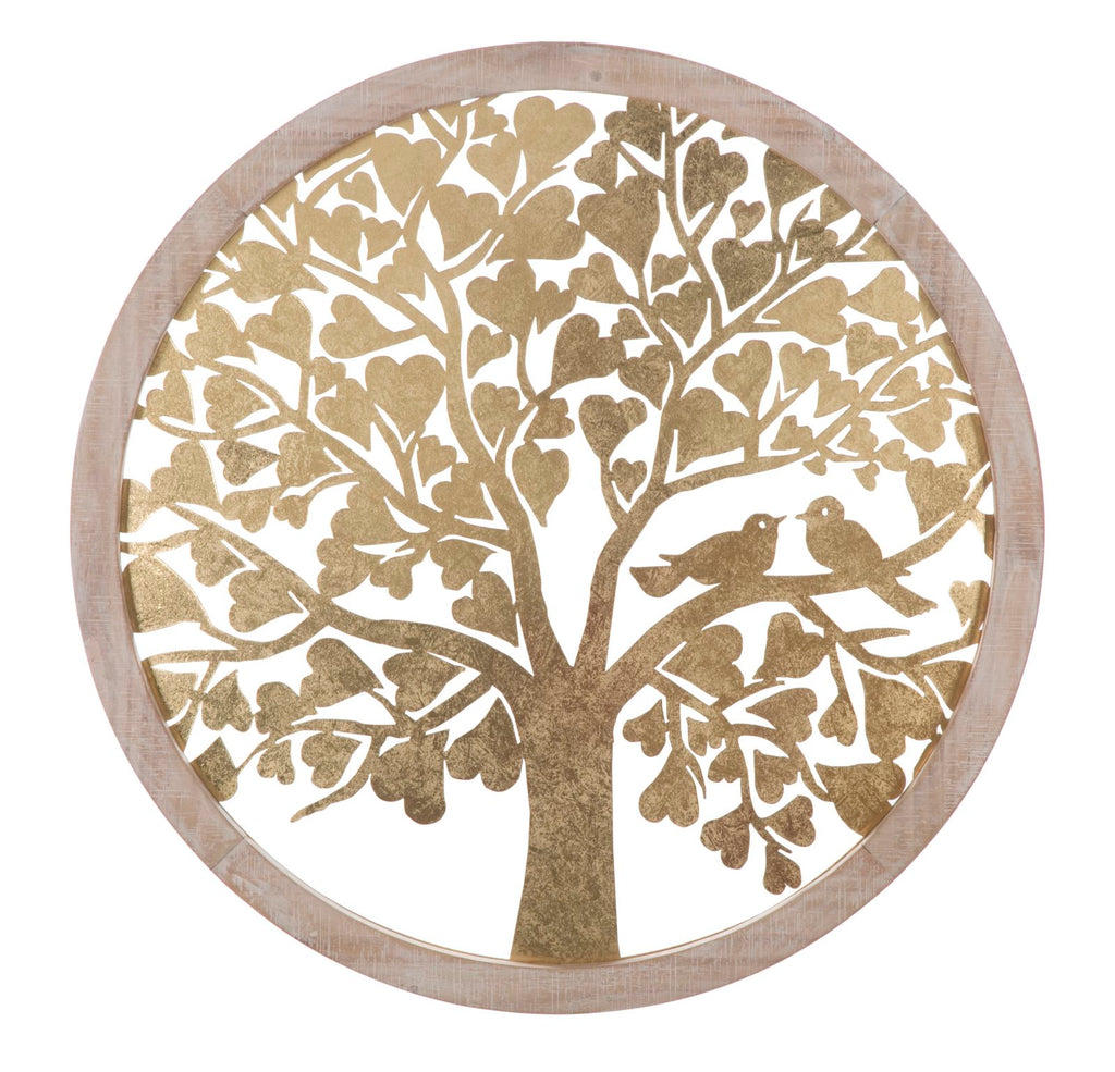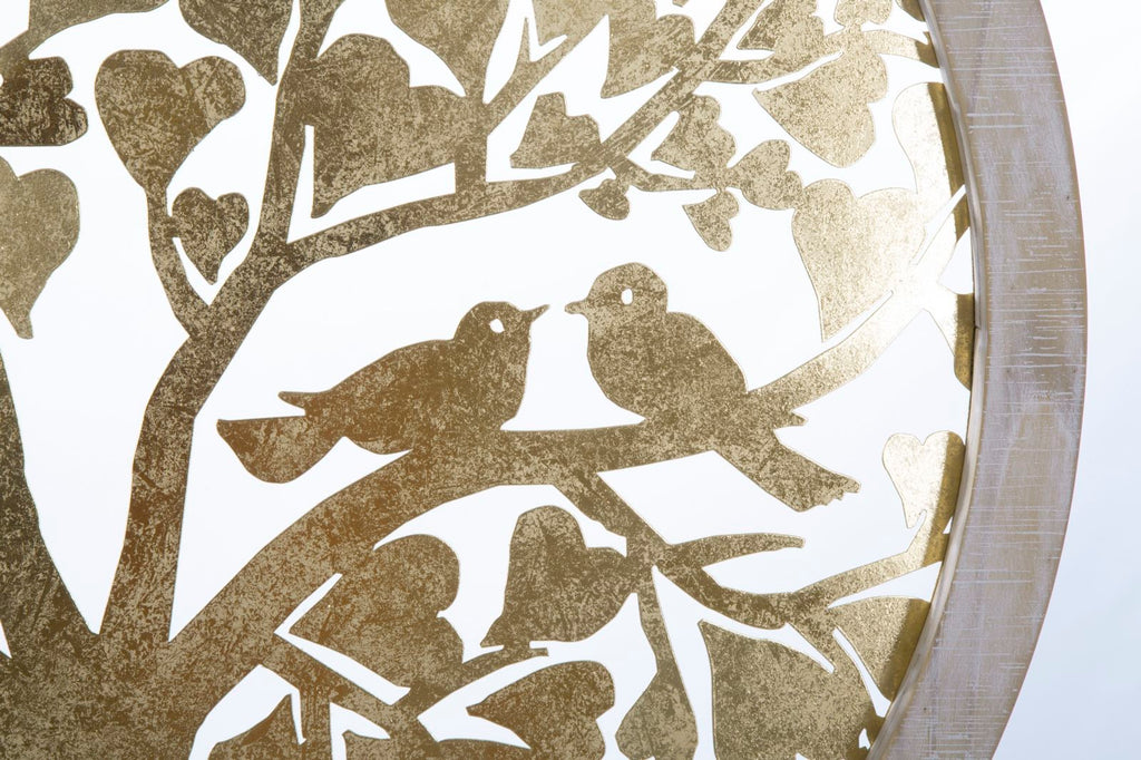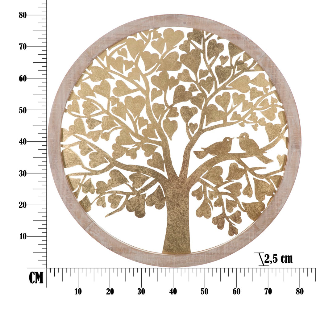 Gold Baumfäule Wandpaneel. Ø80x2,5 cm in Eisen und Gold und hellbraunem MDF