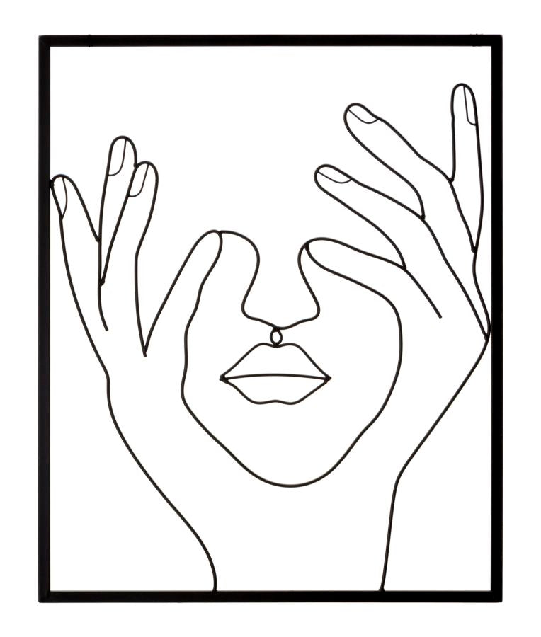 - Pannello decorativo 3D, rappresenta mani e volto con linee semplici