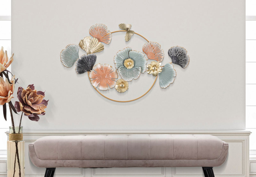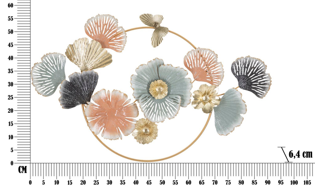 Il pannello decorativo 3D presenta una struttura circolare arricchita da dettagli floreali, foglie e farfalle. I delicati colori utilizzati donano un'atmosfera rilassante e contribuiscono a creare un senso di benessere nell'ambiente in cui è collocato. Questo complemento d'arredo rappresenta una scelta elegante e sofisticata per arricchire le pareti di qualsiasi spazio. L'attenzione ai dettagli e la sua struttura tridimensionale lo rendono un elemento particolare e unico.
