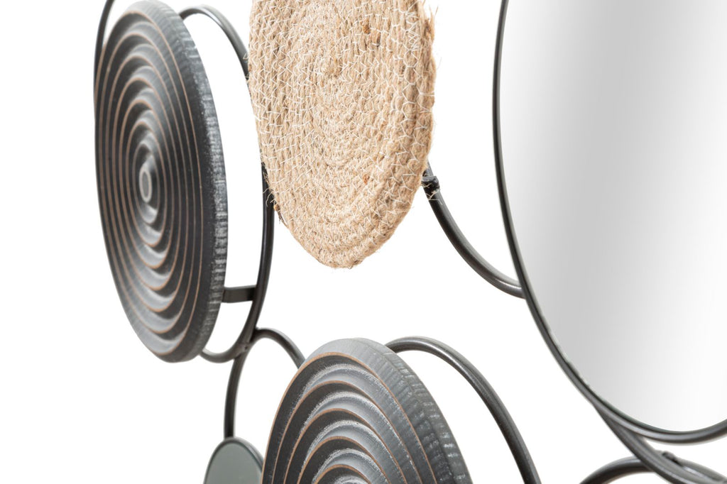 Questo pannello decorativo 3D da parete è un'armoniosa mescola di cerchi di varie dimensioni e materiali, che crea un effetto visivamente affascinante. La combinazione di tali elementi dona un tocco etnico all'ambiente, senza appesantirlo o renderlo troppo specifico. Grazie al suo equilibrio nella disposizione e nella scelta dei materiali, questo pannello è in grado di arricchire qualsiasi spazio con un'atmosfera di fascino e originalità.