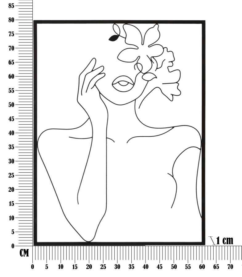 Pannello da Muro Woman With Flowers 60x1x80 cm in Ferro
