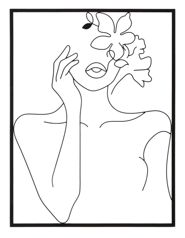 - Il pannello da muro è caratterizzato da linee minimaliste e una figura femminile delicata