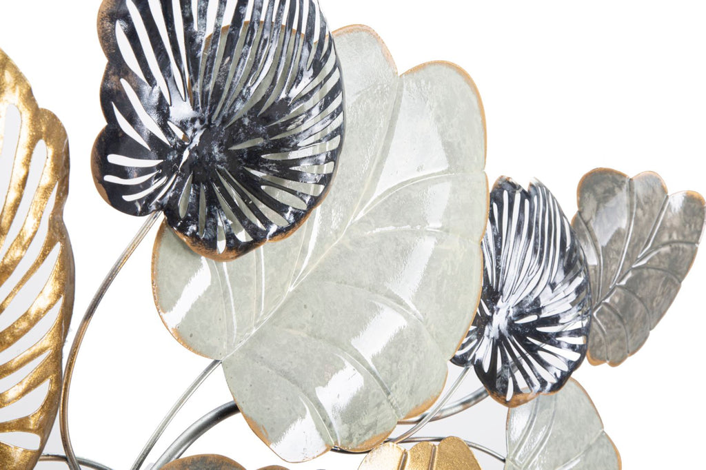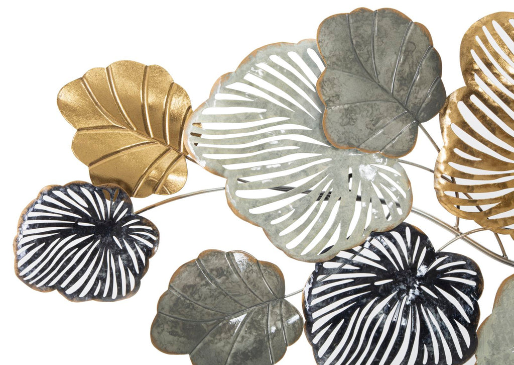Metallpaneel mit einem Design, das an die Natur erinnert. 3D-Paneele sind der neue Trend für die Dekoration von Wänden. Lackiertes Metall ist in geometrischen, pflanzlichen oder tierischen Formen erhältlich, die jeder Umgebung einen glamourösen und überraschenden Reiz verleihen.